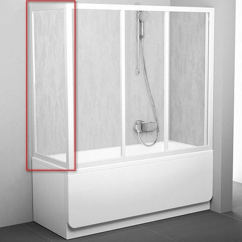 Боковая стенка шторки на ванну Ravak APSV-80, профиль белый, витраж полистирол рейн (9504010241)