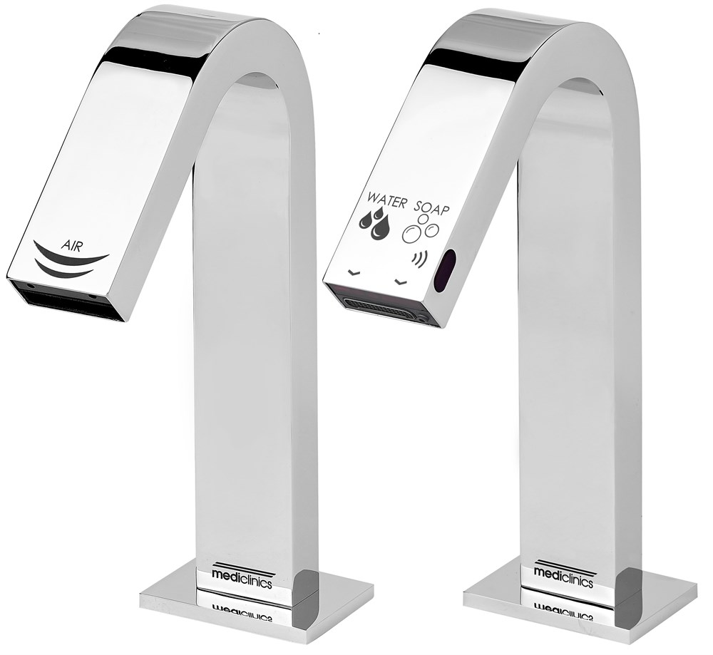Cушилка для рук + кран для воды и дозатор жидкого мыла Mediclinics ALL-IN-ONE UCM092A, сенсорные, хромированная латунь, крепление на столешницу