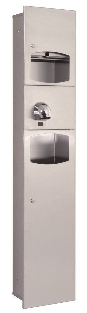 - Элегантные и надежные многофункциональные шкафы, изготовленные из нержавеющей стали марки AISI 304, которые объединяют в себе диспенсеры для бумажных полотенец, ведра для мусора и высокоэффективные сушилки для рук.