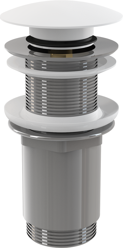 A395B Водослив для умывальника clik/clack 5/4, цельнометаллический с большой белой заглушкой без перелива, для стеклянных умывальников и из искусствен