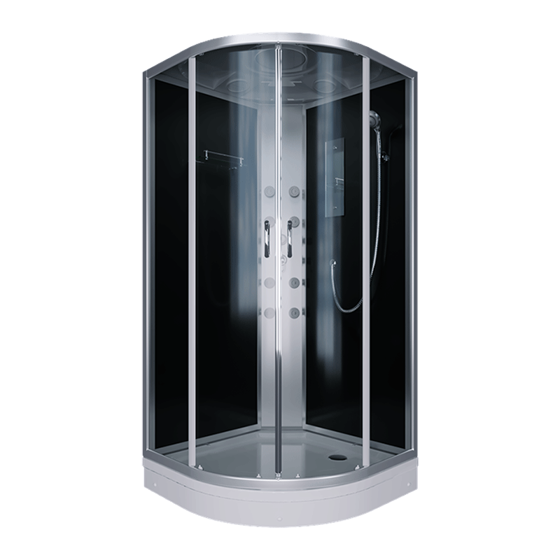 Сборка без герметика: в торцы стеклянных задних стенок в фабричных условиях устанавливается полый силиконовый уплотнитель, что позволяет при сборке кабины использовать герметик только при установке сифона._x000D_