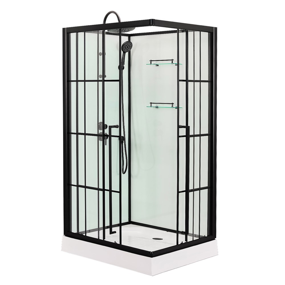 Прозрачное закаленное стекло толщиной 4 мм гарантирует надежность и безопасность эксплуатации. Черный профиль подчеркивает современный дизайн и отлично сочетается с любым интерьером. Низкий поддон высотой 14 см изготовлен из прочного ABS-пластика, устойчивого к механическим повреждениям и легко поддающегося уходу.