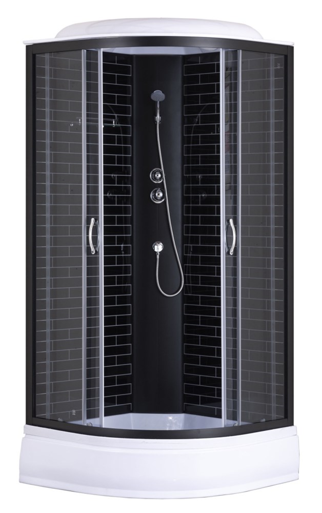 Душевая кабина Loranto 90х90х215 поддон 25 см, черный кирпичный узор, серое стекло 4мм, профиль черный (CS-6690-25GB 90)