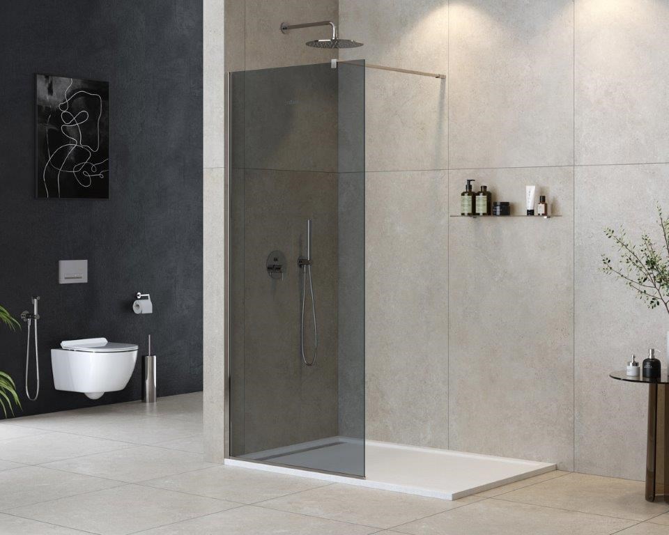 LIBERTA-L-1-90-120-GR-Cr Душевая перегородка с односторонним входом, стекло графит, профиль хром, 900x1200x1950 мм