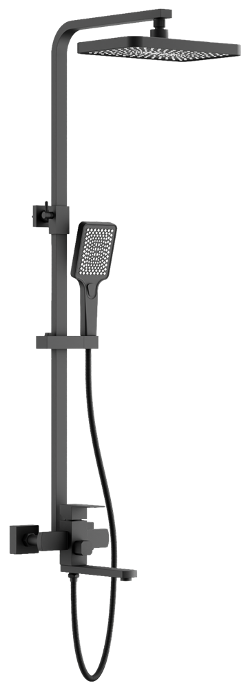 комплектациясмеситель, верхний душ, душевая лейка, держатель душевой лейки, шланг, стойка