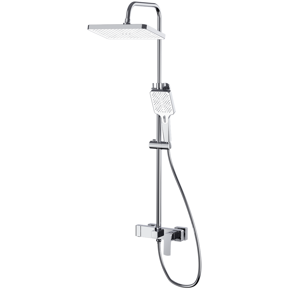 комплектацияверхний душ, душевая штанга, держатель душевой лейки, ручной душ, смеситель, шланг