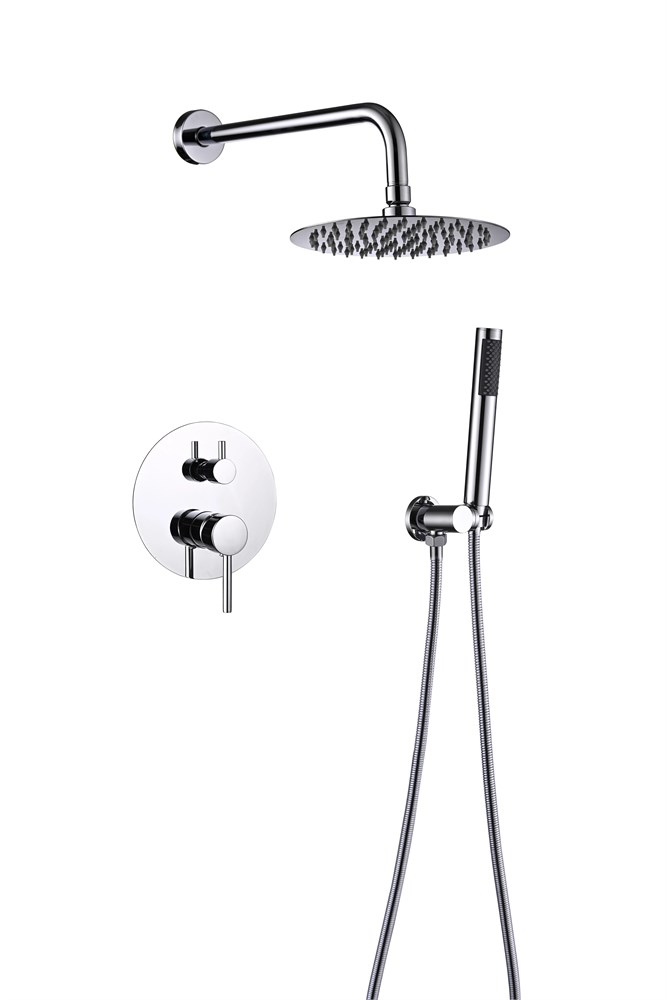 комплектациявстраиваемый блок на два выхода, ручка смесителя, ручка переключателя потоков (дивертора), декоративная накладка смесителя, кронштейн верхнего душа, отражатель для кронштейна, лейка верхнего душа, кронштейн ручного душа, лейка ручного душа, шланг душевой.