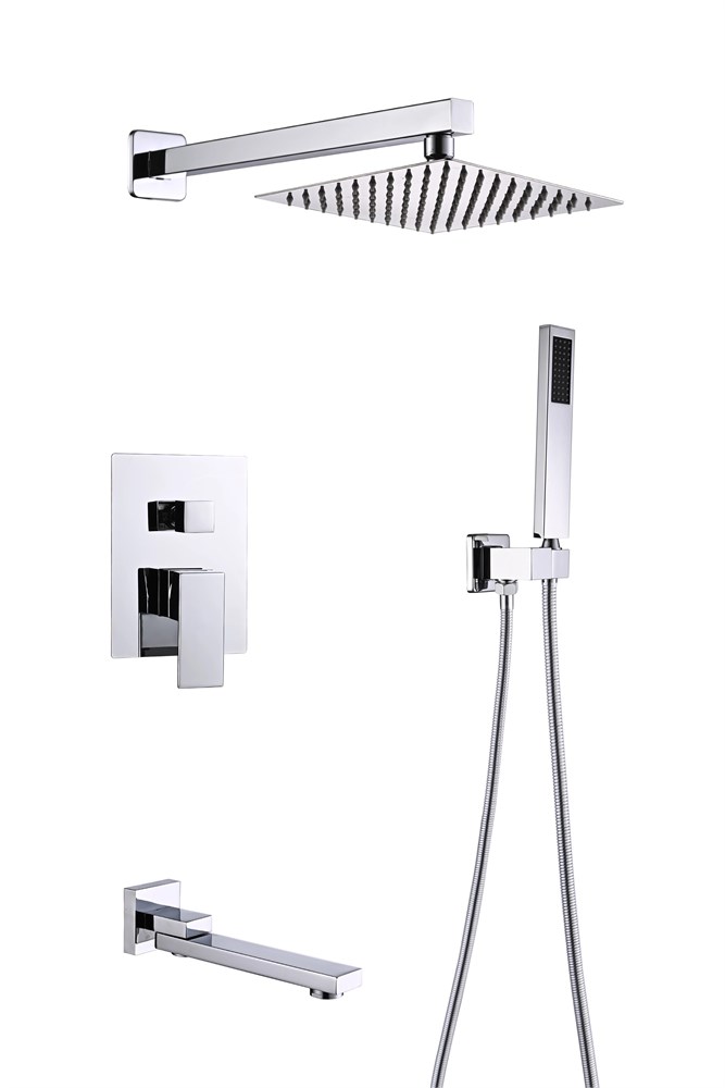 комплектациявстраиваемый блок на три выхода, ручка смесителя, ручка переключателя потоков (дивертора), декоративная накладка смесителя, кронштейн верхнего душа, отражатель для кронштейна, лейка верхнего душа, кронштейн ручного душа, лейка ручного душа, шланг душевой, излив, отражатель на излив.