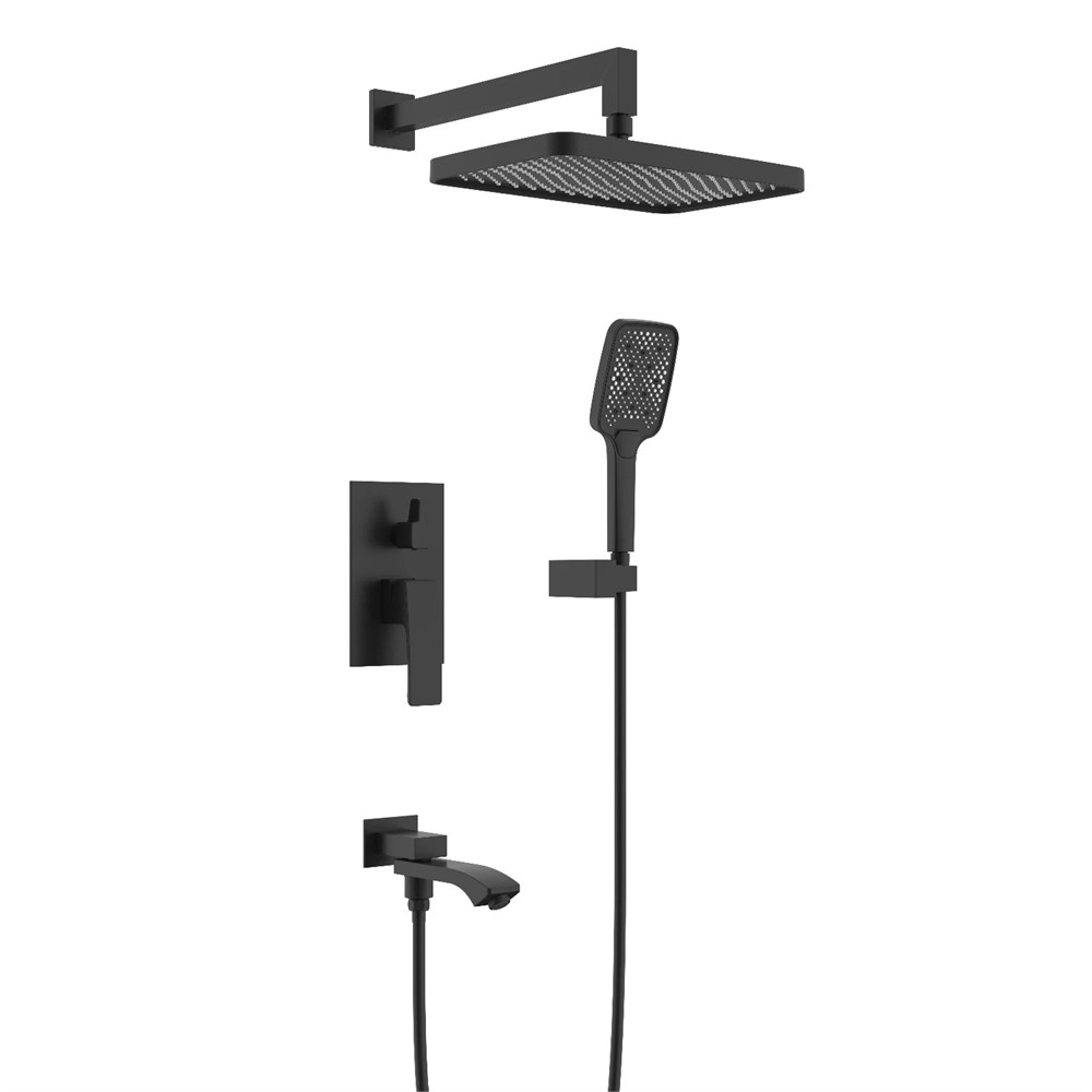 Душевая система Raglo для ванны и душа встраиваемая на 3 режима излив поворотный 20 см, черный (R01.27.06)