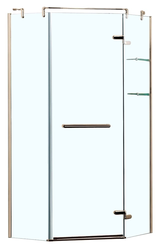Душевое ограждение Azario MONTREAL 1000х1000х2000 R, со стеклянной полкой, без поддона, прозрачное стекло 8 мм,цвет профиля золото глянцевое (AZ-NWG3231 1000 R GOLD)