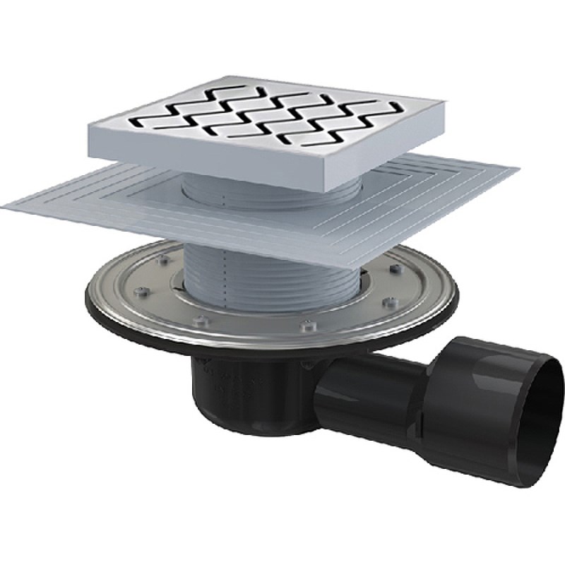 Душевой трап Ravak SN501 X01435 с фланцем, боковым сливом и перфорированной решеткой.
