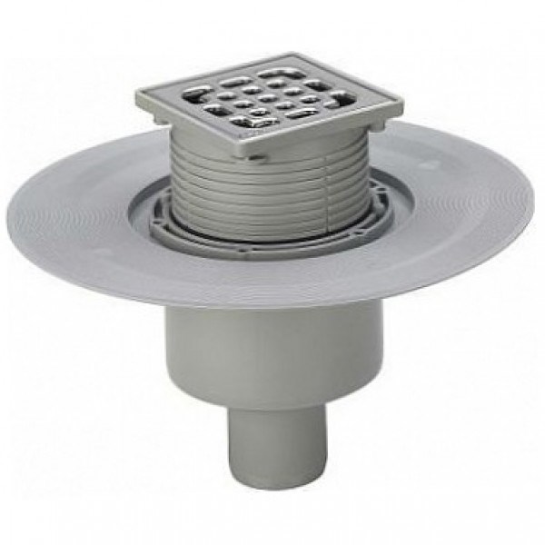 поворотная и регулируемая по высоте насадка 100x100 мм, штампованная решетка из нержавеющей стали 1.4301, заглушка, фланец для нанесения/закрепления гидроизоляции, съемное устройство для защиты от неприятного запаха из системы канализации