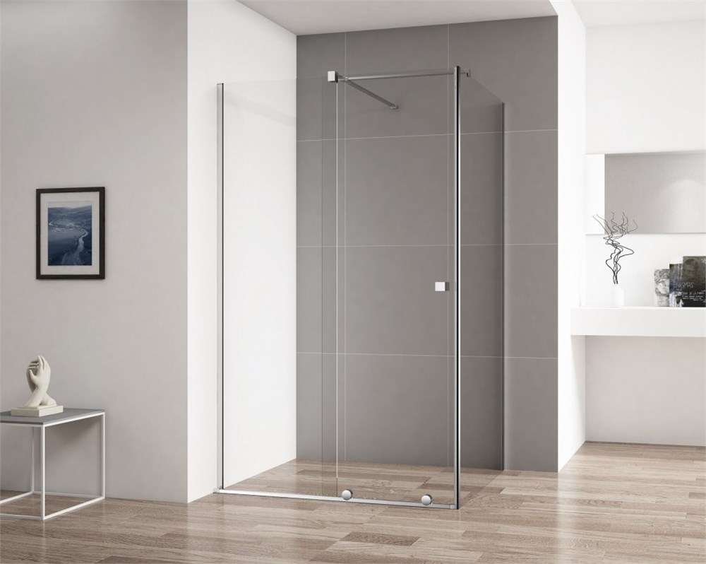 Особенности: беспрофильное ограждение, нижние ролики, позаботятся о плавной и бесшумной фиксации двери.