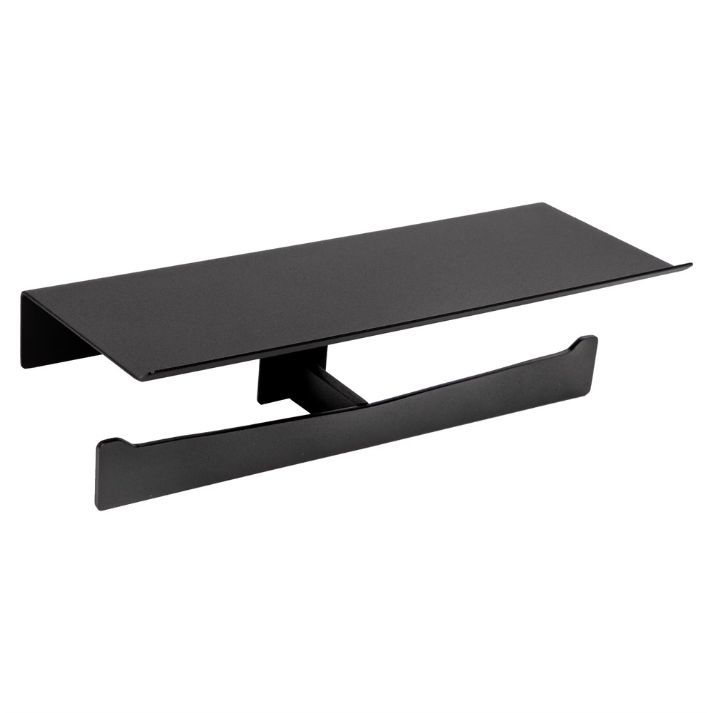 Двойной держатель рулона туалетной бумаги с полкой, AI2004B, нержавеющая сталь AISI 304, черный.