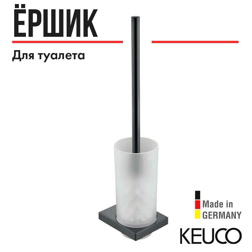 Ершик для унитаза KEUCO EDITION 11 11164139000 в комплекте с держателем, хрустальной матовой колбой и запасной головкой ершика, подвесной, латунь, хром черный шлифованный