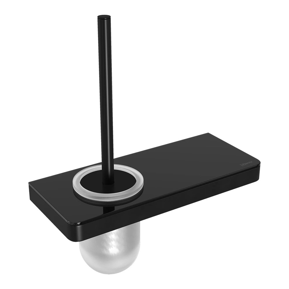 Ёршик для унитаза Lemark GLASS LINE с держателем и полкой, чёрный матовый/черное стекло (9762033)