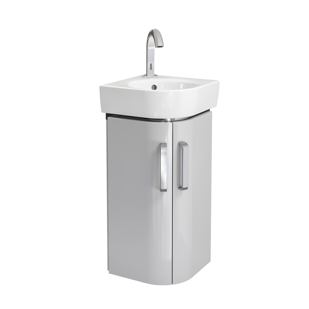 Geberit Renova Compact Шкафчик под раковину угловой, 425х604 мм, длина стороны 305 мм, корпус светло-серый матовый, фасад светло-серый глянец 862133000