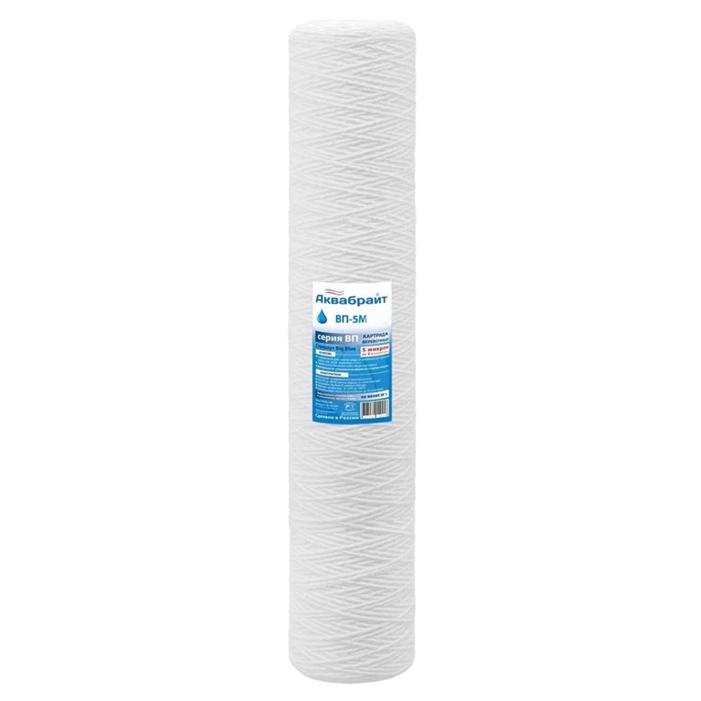 Картридж Аквабрайт ВП-5М предназначен для предварительной механической очистки воды от примесей: песка, ила, грязи и ржавчины. Картридж изготовлен из полипропиленовой веревки, намотанной на полипропиленовый сердечник. Материал имеет пищевой допуск, при очистке органолептические показатели воды не ухудшаются. Блок задерживает частицы диаметром от 5 мкм.