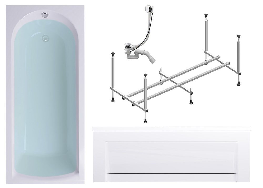 Комплект Акриловая ванна TIMO MIKA1570 150*70*58 + Каркас + Слив-перелив+Фронтальная панель