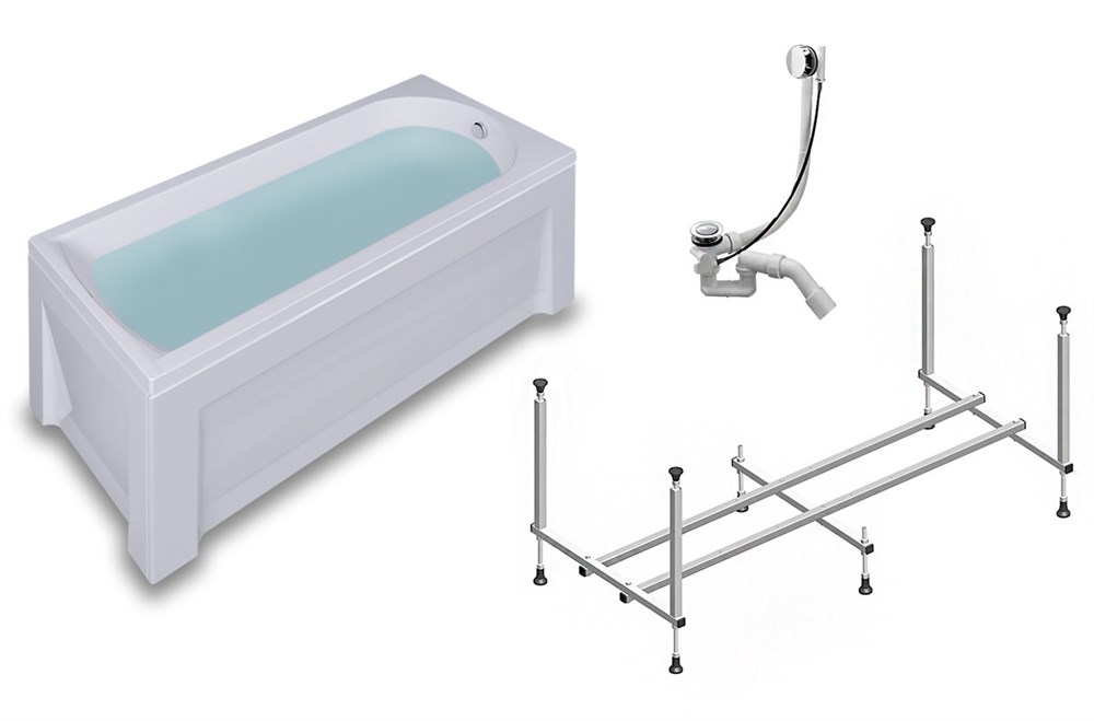 Комплект Акриловая ванна TIMO MIKA1770 170*70*58+Каркас+Слив-перелив+Фронтальная панель+Торцевая панель