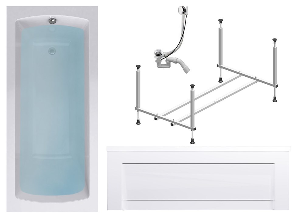 Комплект Акриловая ванна TIMO RITTA1670 160*70*63+Каркас + Слив-перелив+Фронтальная панель