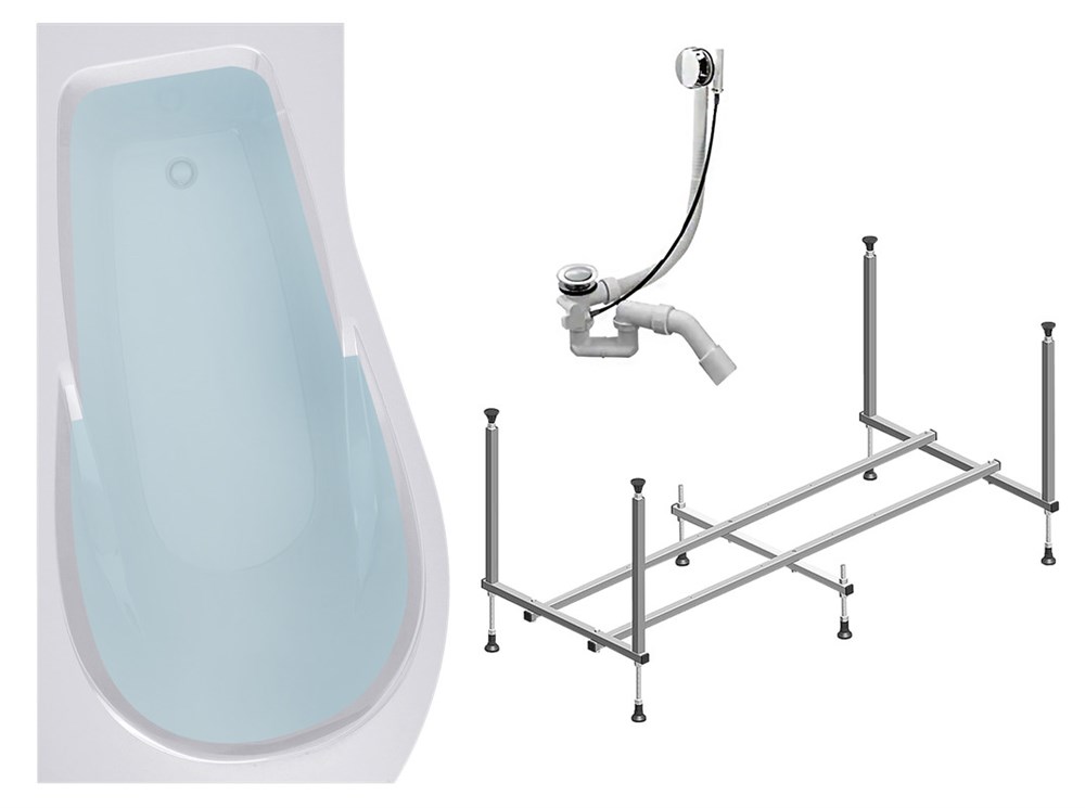 Комплект Акриловая ванна TIMO VINO1792L 170*92*66+Каркас + Слив-перелив