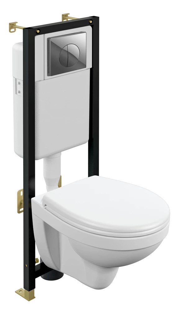 Комплект Cersanit DELFI TPL Инсталляция BLACK кнопка LEON пластик хром глянцевый (S-SET-DEL/Black/TPL/Cg-w)
