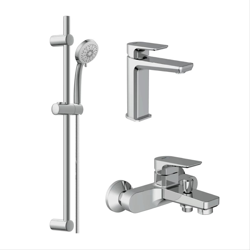 Всю красоту чистых природных линий раскрывает комплект смесителей и душевого оборудования 3 в 1 от Сersanit. Общим дизайном объединены смесители для ванны и раковины Nature и душевой гарнитур Vibe. Комплект создан для организации пространства в едином стиле и по доступной цене.