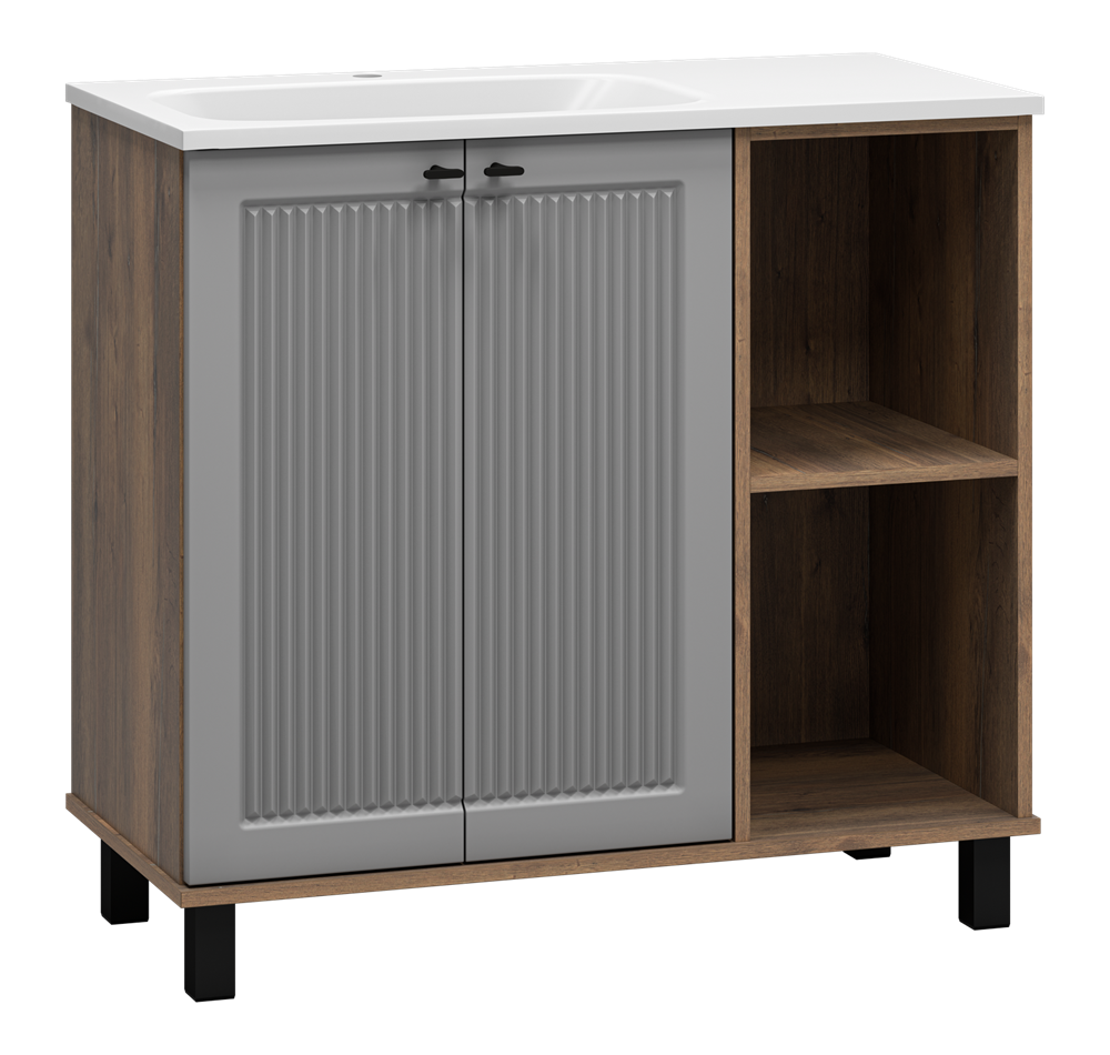LUMUS - 90 Тумба напольная 2 дв.с нишей мат. эмаль, левая + раковина