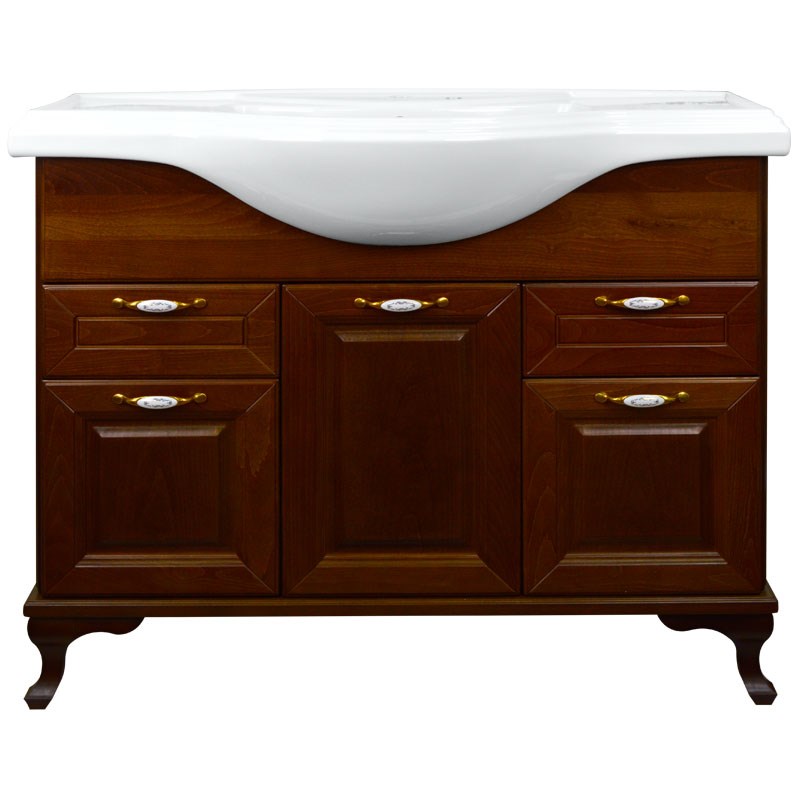 Комплект Пандора Тумба 1050 темный орех (массив Бук) с раковиной Classic 105 (Кировит)