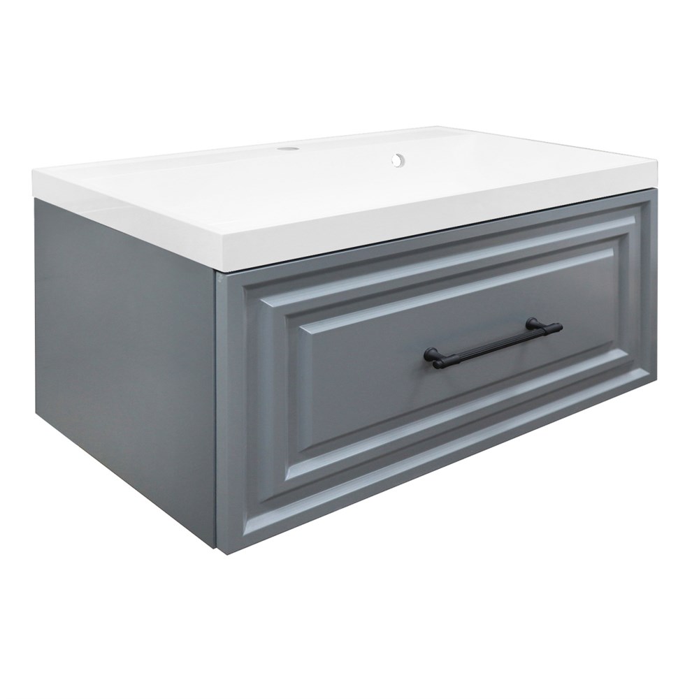 Комплект Тумба Azario LAURA 80/1 800х450х455 подвесная, с раковиной CLASSIK 80, серый матовый, фурнитура черная (CS00096987)