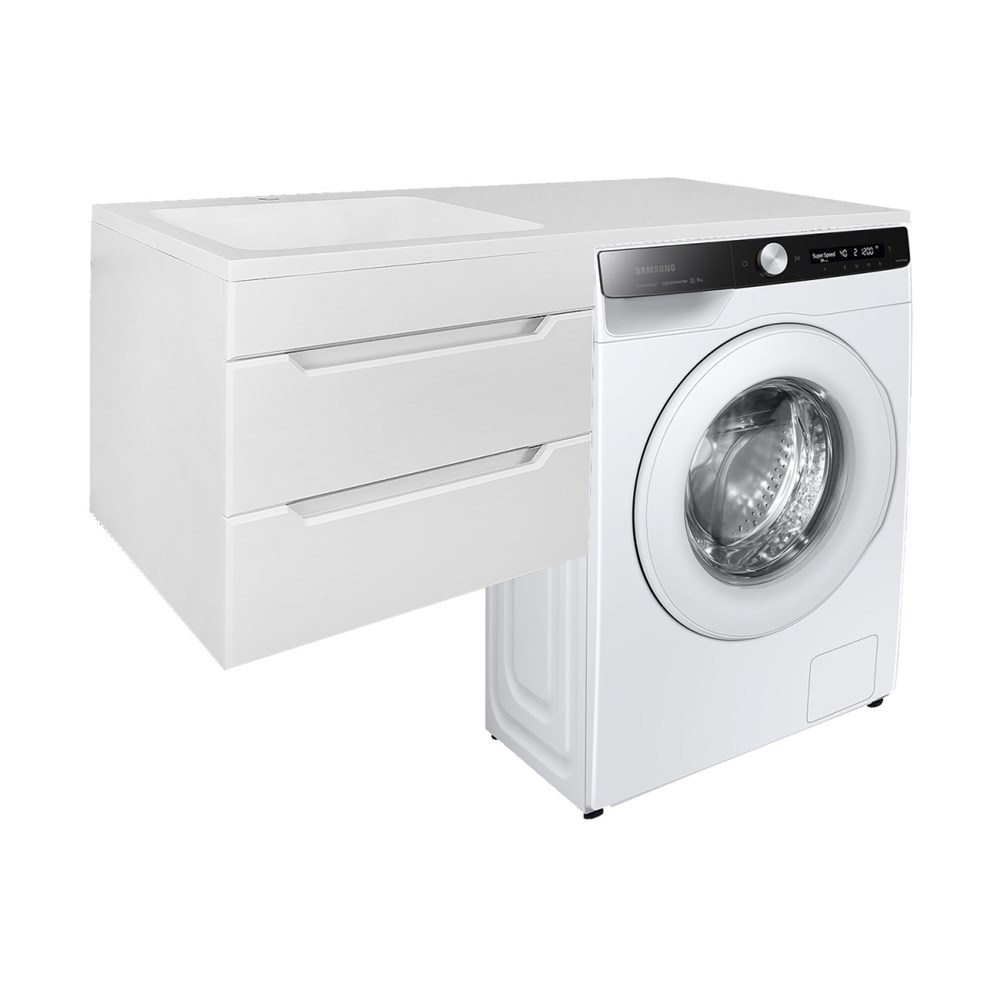 Комплект тумба Loranto Палермо 120/2 подвесная, под стиральную машинку (60), с раковиной Изабелла 120, левая, белая (CS00093191)