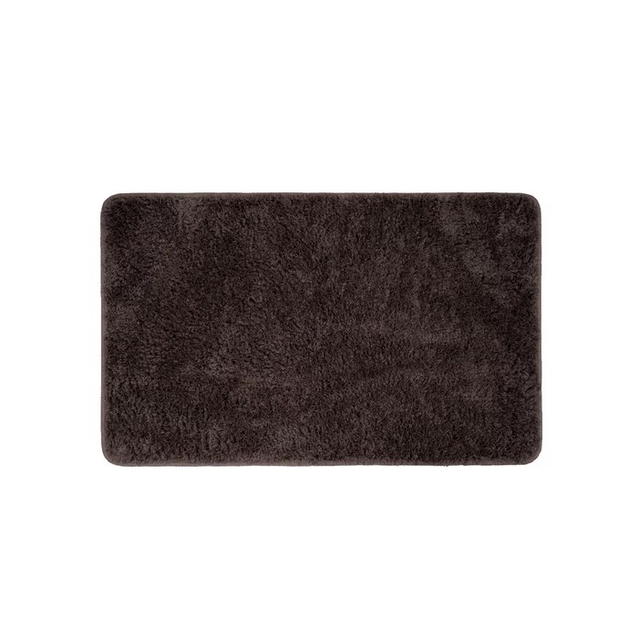Мягкий коврик для ванной темно-коричневого цвета с плотным высоким ворсом (2 см), очень приятный на ощупь. Стриженый ворс из микрофибры отлично держит форму, легко чистится и быстро сохнет. Коврик подойдет для ванной и туалета.
