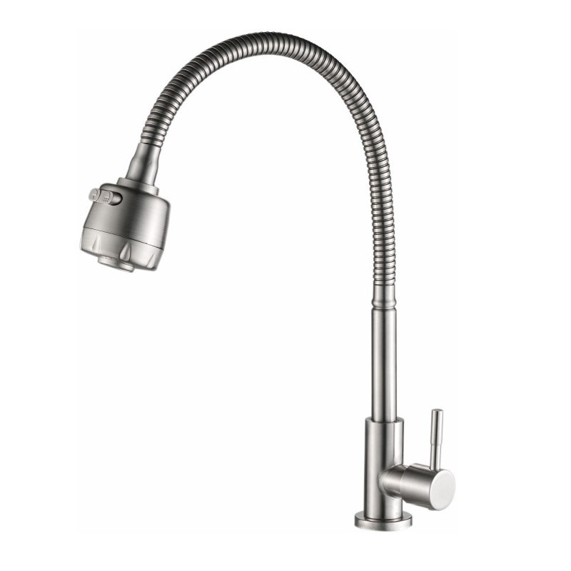 Кран на одну воду бренда Haiba. Изготовлен из нержавеющей стали. Картридж 35 мм. Укомплектован аэратором. Гибкая подводка 40 см. С поворотным изливом.