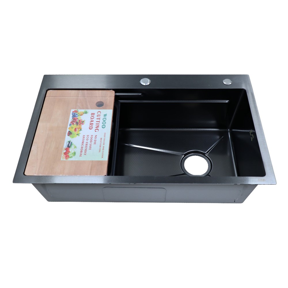 Кухонная мойка AZARIO NAOMI (750*460*220) нержавеющая сталь черный соты (сифон, сифон, корзина, доска) (AZB7546H)