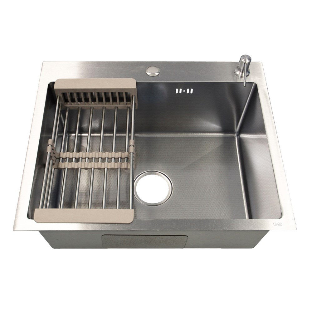 Кухонная мойка AZARIO NICOLE 500*500*220 нержавеющая сталь, в комплекте сифон, диспенсер, коландер, серебро соты (AZS5050H)