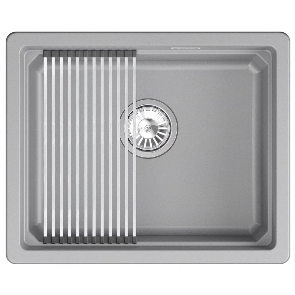 Мойка российского производителя Granula. Односекционная кухонная мойка прямоугольной формы 550х450 мм для установки под столешницу в шкаф 600мм. Представляет собой инновационный комплекс с удобной площадкой внутри чаши для установки ролл-мата или разделочной доски. Выполнена из кварцевого композитного материала высокой плотности и гигроскопичности, что обеспечивает не менее 20 лет надежной эксплуатации. Ролл-мат и дозатор из нержавеющей стали идут в комплекте.