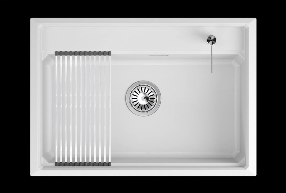 Granula - мойка российского производителя с широкой и вместительной чашей, идеально подходящей для крупной посуды. Изготовлена из кварцевого песка, она устойчива к царапинам и абразивам, а также не боится высоких температур. Модель Kitchen Space KS-7301 доступна в 4 цветах и содержит в комплекте сифон, дозатор для жидкого мыла и ролл-мат, который удобно устанавливается на специальную площадку внутри чаши.