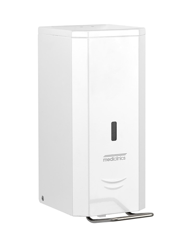 Локтевой дозатор жидкого мыла Mediclinics, DJP0034, материал: нержавеющая сталь AISI 304, цвет: белая эпоксидная краска