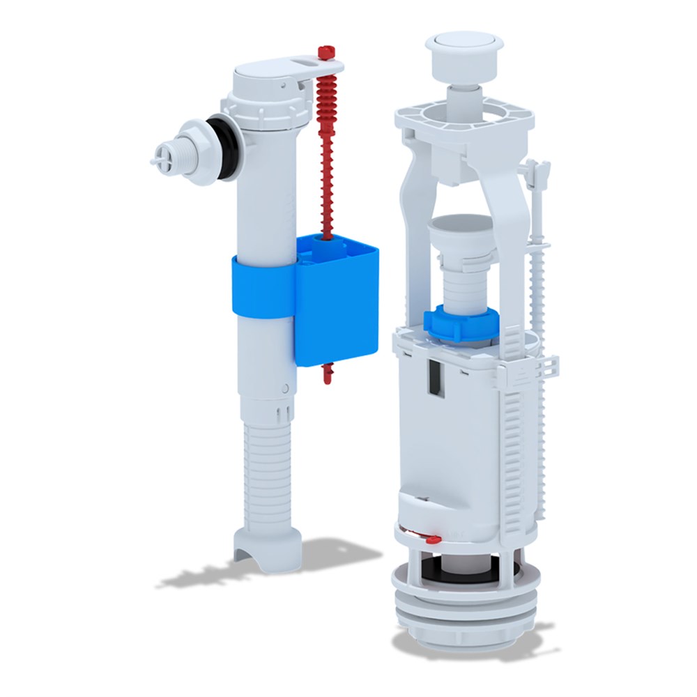 Набор для бачка унитаза. Наливной механизм с боковой подводкой и пластиковой резьбой диаметром G 1/2. Сливной механизм белая кнопка с одним режимом слива