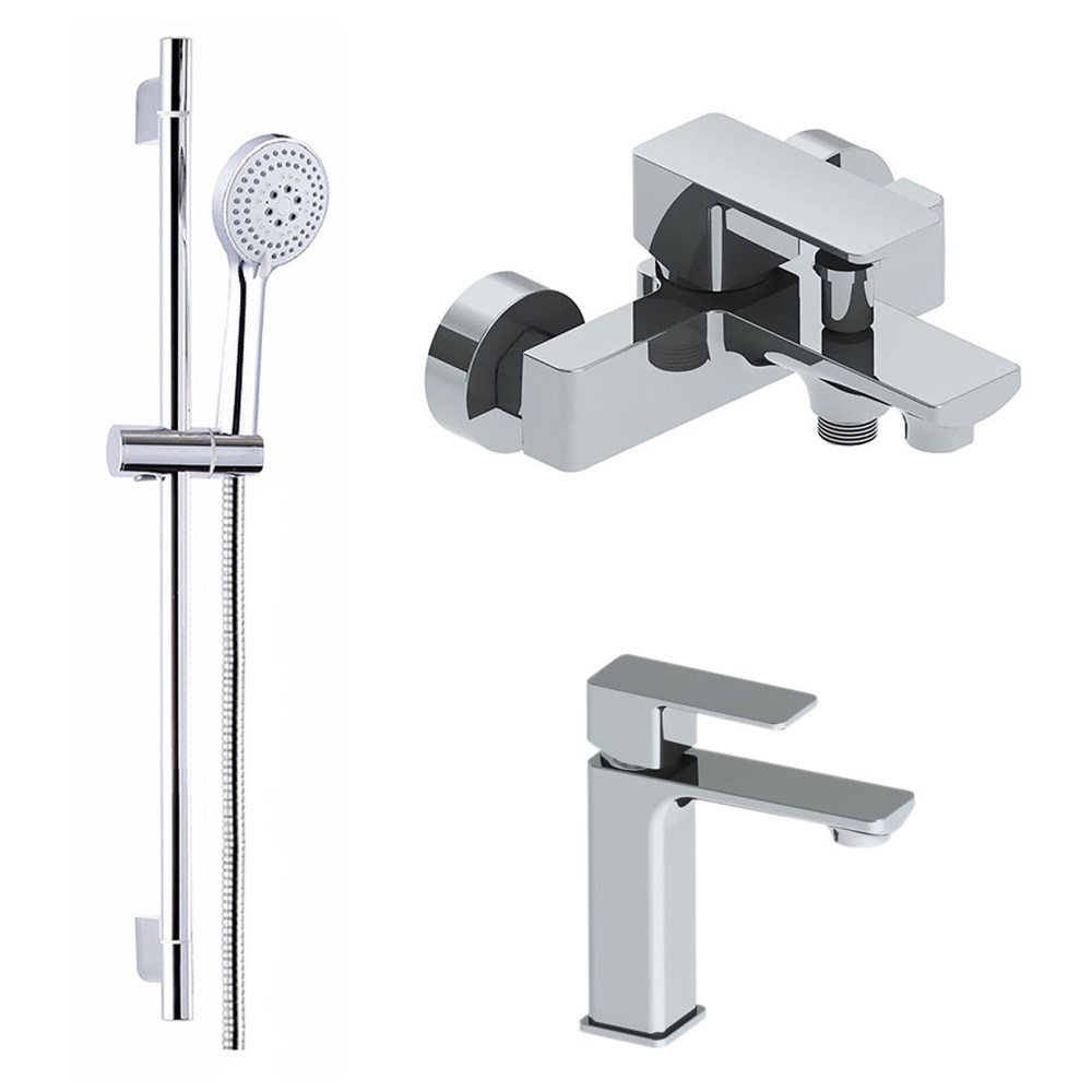 Набор смесителей 3 в 1 для ванны Azario CADEO, хром (AZ-15940501+AZ-15944501+AZ-15782010)