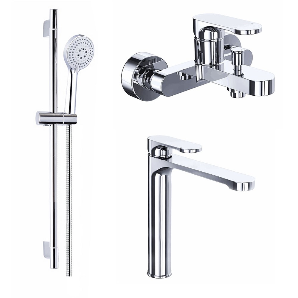Набор смесителей 3 в 1 для ванны Azario VIANO, хром (AZ-15830501+AZ-15834551+AZ-15782010)