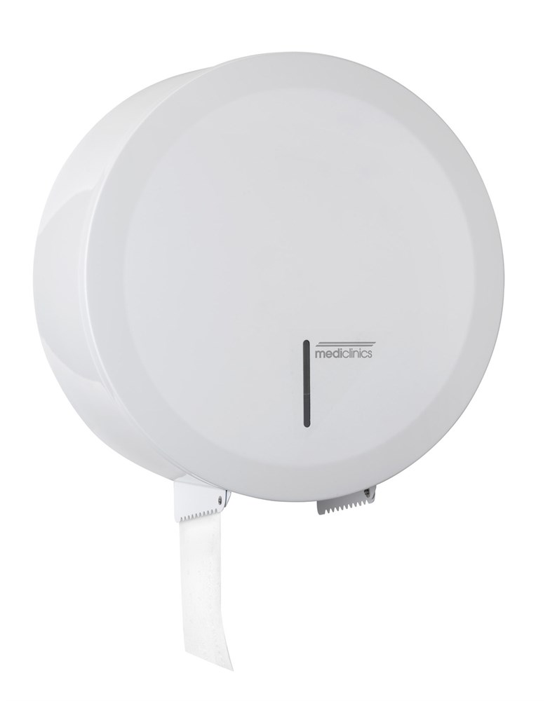 • Круглый диспенсер туалетной бумаги для промышленных рулонов шириной 230 мм, монтируется на поверхность, имеет стильный дизайн, подходящий для любой туалетной комнаты.