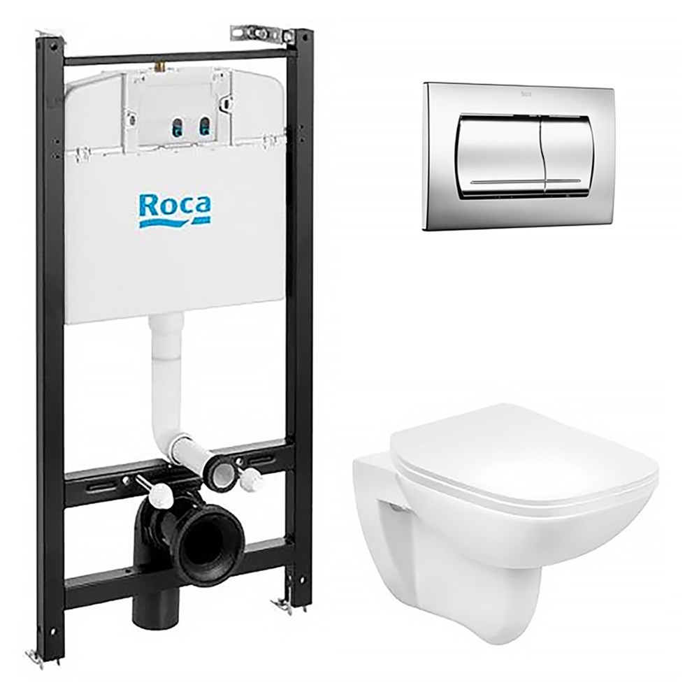 ПЭК Roca Debba Rimless: Инсталляция с подвесным унитазом, быстросъемное сиденье микролифт + Кнопка смыва Roca ACTIVE PL 52B, хром глянец (Z.RU93.1.044.1)