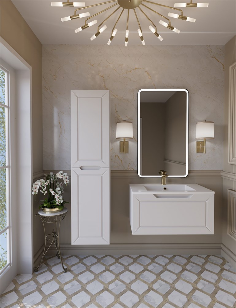 Стильный дизайн – классический с современными акцентами, панельная фрезеровка придает дизайнерской тумбе в ванную элегантный вид.