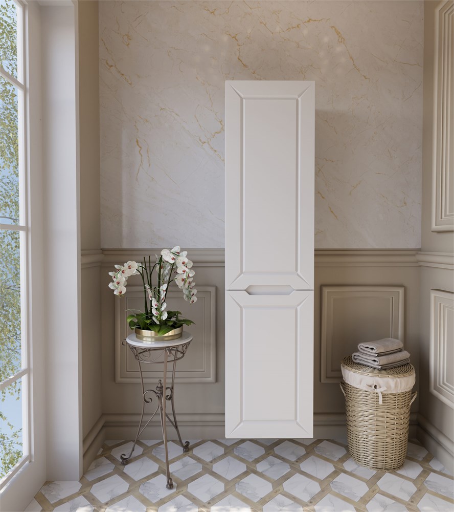 Стильный дизайн – классический с современными акцентами, панельная фрезеровка придает дизайнерской тумбе в ванную элегантный вид