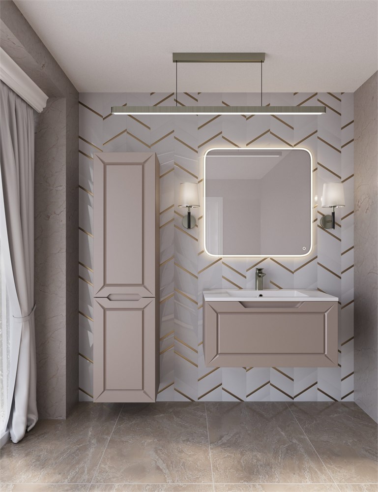 Стильный дизайн – классический с современными акцентами, панельная фрезеровка придает дизайнерской тумбе в ванную элегантный вид.