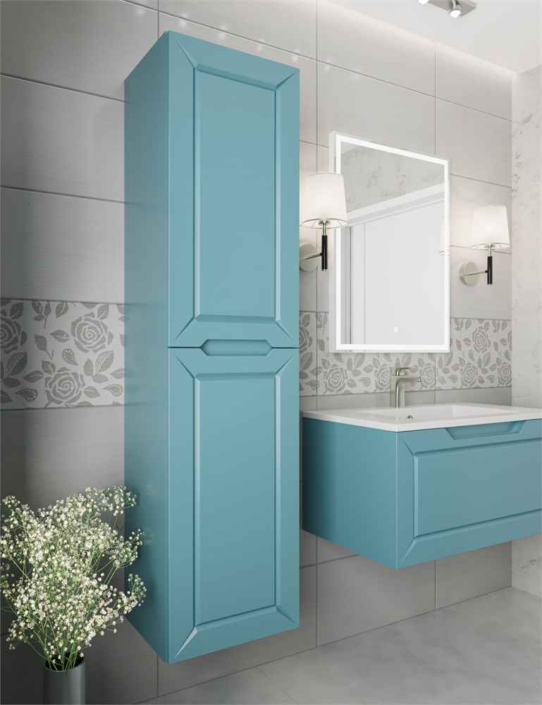 Пенал АКВАКРАФТ «Alba» аквамарин для ванной комнаты с откидной корзиной
