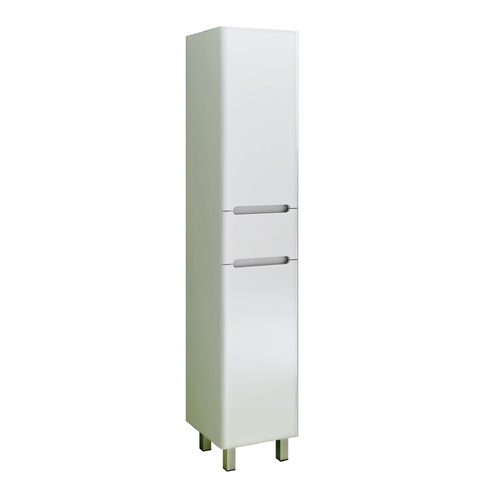Шкаф-колонна напольный/подвесной с двумя дверками и выдвижным ящиком на шариковых направляющих скрытого монтажа с доводчиком. Верхнее отделение - с распашной дверью (петли справа) и одной внутренней полкой. Нижнее отделение - с откидной дверкой и корзиной для белья. Петли со встроенным доводчиком, навесы - 2шт, ножки хром - 2шт, ножки пластик -2шт. Выпускается только в правом исполнении.