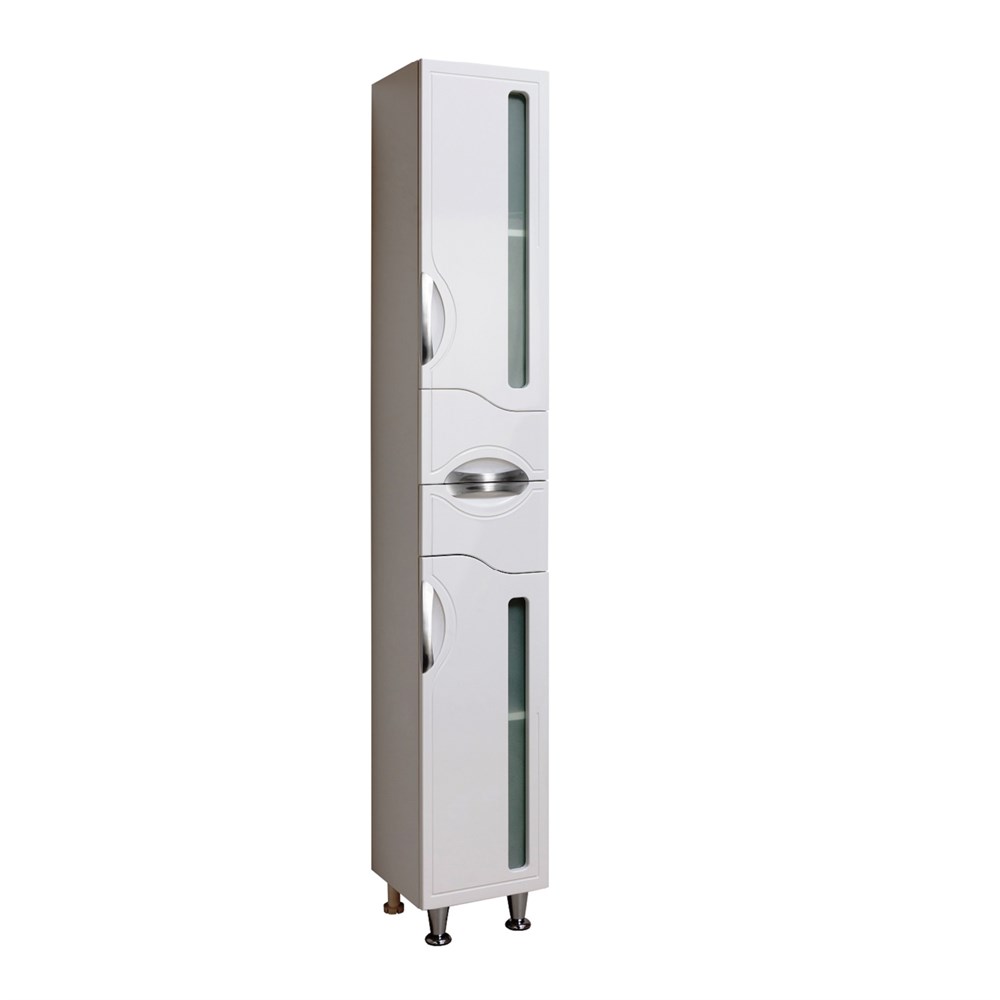 Шкаф-колонна напольный с двумя распашными дверками и выдвижными ящиками. Дверцы со стеклянными вставками. В нижнем и верхнем отделениях - по одной внутренней полке. Петли со встроенным доводчиком, ручки врезные - 4шт, ножки хром -2шт, ножки пластик -2шт. Выпускается только в правом исполнении.